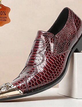 sapatos sociais masculinos de couro com padrão de crocodilo na cor bordô e bico fino de metal, mocassins elegantes para banquetes, eventos empresariais e ocasiões especiais