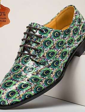Sapatos sociais masculinos de couro legítimo verde com cadarço e estampa artística, estilo oxford, ideais para homens modernos, banquetes, apresentações e festas elegantes.