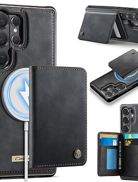 telefone Capinha Para Samsung Galaxy S26 S26 Plus S26 Ultra Capa traseira Caso de Adsorção Magnética Capa para Cartão Wallet Com Suporte Destacável Suporte para carregamento sem fio Retro Couro PU