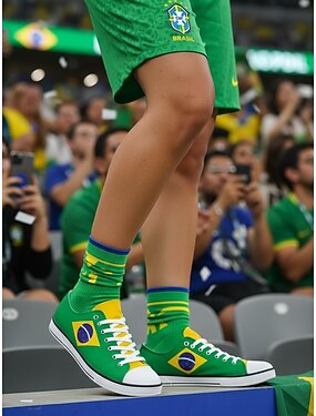 Tênis de lona feminino para torcedoras de futebol – calçado casual com cadarço nas cores do Brasil, ideal para dias de jogo, eventos esportivos, looks urbanos e uso diário.