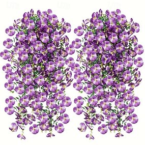 Conjunto de 4 ramos de amor-perfeito artificiais para pendurar, decoração floral artificial para exteriores, resistente aos raios UV, flores artificiais realistas para jardim, varanda, sacada,