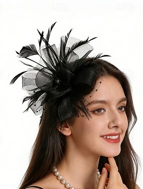 Decoração de Cabelo Penas Casamento Aniversário Vintage Estilo bonito Com Penas Tule Capacete Chapéu