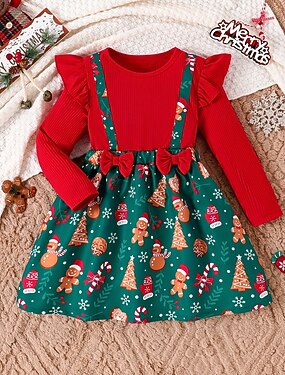 Infantil Para Meninas Vestido Floco de Neve Emoji Manga Longa Ao ar livre Presentes de Natal Frufru Moda Diário Poliéster Altura dos Joelhos Vestido casual Outono Inverno 4 anos + Vermelho