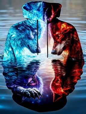 Homens Lobo Moletom 3D Fantasia. Manga Longa Gola Redonda Streetwear Bandagem Presente Azul Preto Com Cordão Outono Inverno Designer S M L XL XXL XXXL