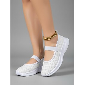 Tênis Mary Jane feminino branco em tela – calçado leve, respirável e confortável para caminhada, com tira elástica, ideal para uso diário, viagens e trabalho.