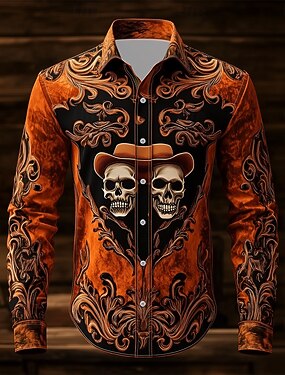 Homens Estampado Cashemere Caveiras Finados Camisa Social camisa ocidental Camisa de caubói Manga Longa Vintage retrô Ao ar livre Férias Primavera Outono Aberto para a Lateral Impressão 3D Camisa