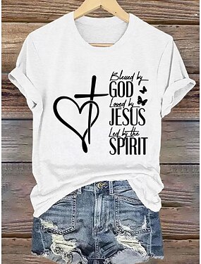 Páscoa Mulheres Camiseta Imprimir Gráfico Letra à moda Clássico Casual Manga Curta Gola Redonda Tops regulares Diário Azul Preto Branco Rosa Verão Primavera