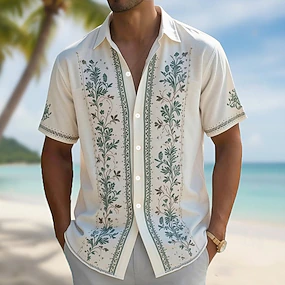 Homens Estampa floral Plantas Tropicais Flores Camisa Guayabera Camisa havaiana Camiseta Aloha Manga Curta Havaiana Férias Roupa de Praia Verão Primavera Aberto para a Lateral Impressão 3D Camisas de