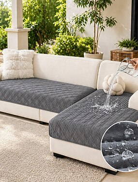 Capas impermeáveis para almofadas de sofá, capas removíveis para almofadas de sofá modular em formato de L, tecido jacquard grosso e elástico, capa lavável para chaise longue com elástico na parte