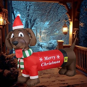 Decoração de Cachorro Inflável de Natal com LEDs Integrados Cachorro Salsicha de Natal Inflável para Interior e Exterior Decoração de Jardim Gramado Festa Pátio Comprimento 1,5M Altura 1,2M