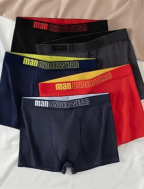 Homens Conjunto de bolsa de 5 peças Calcinha básica Cueca Boxer Cuecas Cintura elástica Terileno Respirabilidade Confortável Letras Multicolorido