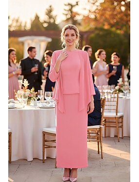 Tubinho Terno de vestido Até o Tornozelo Vestido de festa Vestido Coquetel Vestido de convidada de casamento Vestido Para Mãe dos Noivos Sem Manga Manga Longa Gola Redonda Elegante Simples Formal