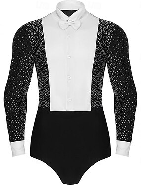 Collant branco masculino para dança de salão latina - modelo com lapela de strass para competição & desempenho