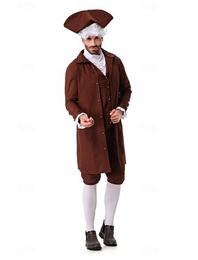 250º Aniversário EUA Rococó Barroco Roupa Manga Comprida George Washington Colonial Guerra Revolucionária Fantasia Homens Carnaval Dia da Independência 4 de julho Adulto Casaco Calças Colar
