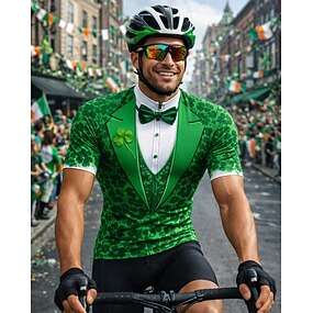 Camisa Jersey Masculina Dia de São Patrício Camiseta de Ciclismo Shamrock Floral Novelty Manga Curta Camiseta Para Bike Com 3 Bolso Traseiros UV Resistentes Secagem Rápida Com Bolsos Zíper Frontal