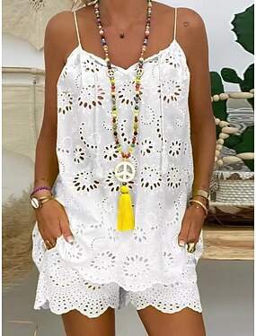 Mulheres Conjuntos de shorts Bolero Top Sem Manga Decote V Côr Sólida Renda Moda Roupa de rua Casual Diário Ao ar livre Azul Preto Branco Verão Normal