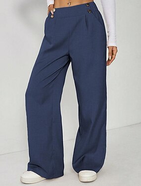Mulheres Calças Social Calça verão Férias Moda Casual Diário Comprimento total Cintura Média Tecido Zíper Bolsos Perna larga Conforto Leve Macio Micro-Elástica Streetwear Escritório Feriado Azul