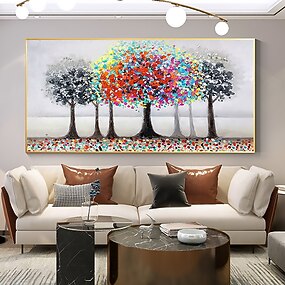 Pintura a óleo artesanal arte da parede da lona decoração original colorida floração floresta pintura abstrata pintura de paisagem para decoração de casa com moldura esticada/sem pintura de moldura