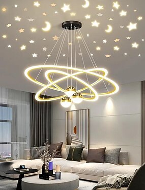 levou luz pendente 3-light 80cm / 60cm / 40cm anel circular design 113w acabamentos pintados em alumínio moderno downlight smart wi-fi controle regulável com controle remoto