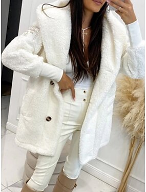 Mulheres Casaco de lã Casaco de pelúcia Manter Quente Respirável Botões Bolsos Forrada com Fleece Casual Tecido Férias Rua Roupa Diária Para Noite Zíper Longo Capuz Normal Manga Longa agasalhos