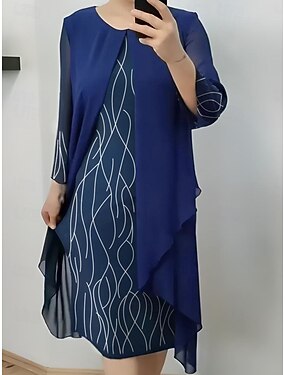Sereia Longuette Vestido de festa Vestido Coquetel Vestido de convidada de casamento Vestido Para Mãe dos Noivos Manga Longa Gola Redonda Elegante Vintage Festa Feriado Coquetel Noite Formal com