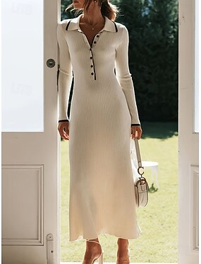 Linha A Longuette Vestido de festa Vestido Coquetel Vestido de convidada de casamento Vestido Para Mãe dos Noivos Manga Longa Gola Redonda Elegante Vintage Formal Noite Formal Festa de Casamento com