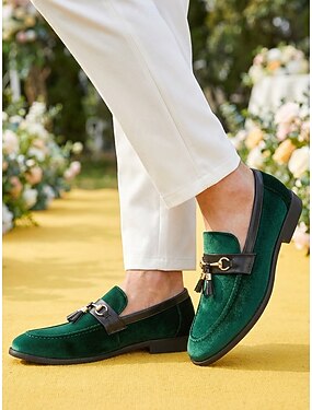 Mocassins masculinos verdes – sapatos para casamentos e ocasiões formais, elegantes, em couro sintético, calçado social confortável.