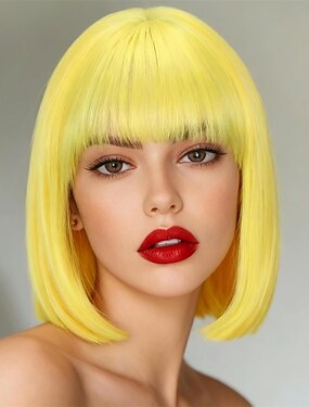 Peruca de Carnaval 2026 Loiro Vermelho Preta Liso Bob Curto Peruca sintética para festivais Mardi Gras Parada Cabelo para fantasia de cosplay para Feminino