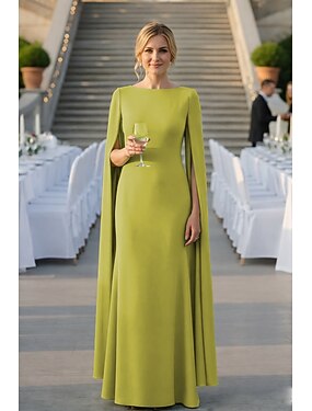 Tubinho Longo Vestido formal Vestido de noite Vestido de capa Vestido de baile com capa Vestidos de noite Vestido formal Elegante Estilo Celebridade Manga Longa Decote Canoa Festa de Jardim Casamento