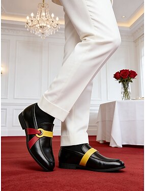 sapatos masculinos de couro sintético premium com design de blocos de cores ousados - calçados confortáveis e elegantes para ocasiões casuais e formais