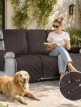 Capa acolchoada 100% impermeável para sofá reclinável de 3 lugares, peça única, lavável, antiderrapante, com tiras elásticas e bolso para cães e outros animais de estimação. Cor: chocolate.