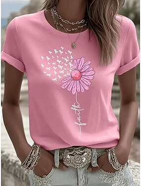 Mulheres Camiseta Imprimir Floral Gráfico Vintage à moda Clássico Manga Curta Gola Redonda Decote Redondo Tops regulares Diário Para Noite Final de semana Preto Branco Rosa Rosa cor de Rosa Verão