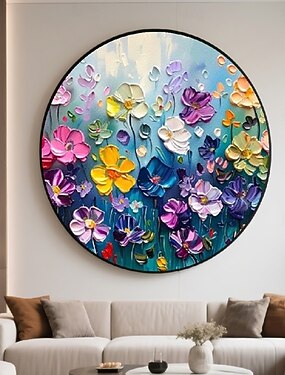 pintura em moldura feita à mão, pintura a óleo 3D, obra-prima floral com cores vivas e pinceladas texturizadas exibindo flores exuberantes em tons vibrantes, criadas usando técnicas de impasto em