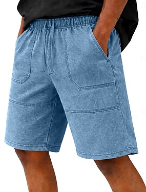 Homens Calção Shorts de verão 100% Algodão Shorts casuais Shorts com lavagem ácida Bolsos Cintura elástica Puro Cor Única Lavado Conforto Respirável Curto Casual Ao ar livre Praia Férias Moda Azul