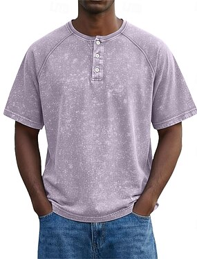 Homens Camisetas Top Henley Camiseta de algodão Camisa lavada Manga Curta Côr Sólida Tecido Cor Única Vintage Designer Casual Tingimento em peça Desaparecido Botões Henley Casual Diário Ao ar livre