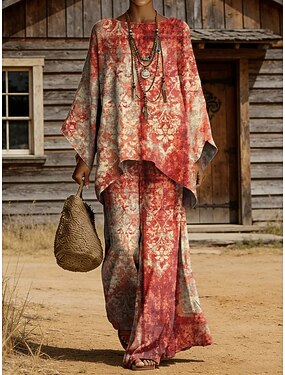 Mulheres Conjuntos de calças Manga 3/4 Decote Redondo Gráfico Geométrica Imprimir Moda Roupa de rua Casual Diário Ao ar livre Azul Vermelho Verde Verão Ajuste Largo