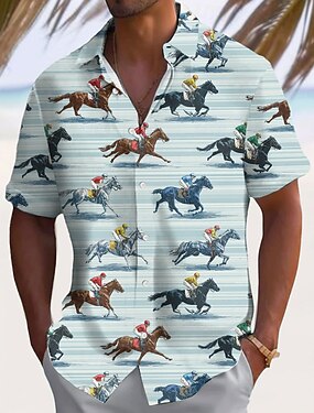 Derby de Kentucky Homens Listrado Cor gradiente Corrida de cavalo Camisa Social camisa de verão camisa de botão Manga Curta Vintage retrô Feriado Verão Primavera Aberto para a Lateral Impressão 3D