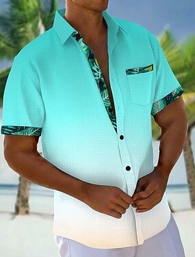 Homens Coqueiro Cor gradiente Plantas Tropicais Camisa havaiana camisa de botão Camiseta Aloha Manga Curta Havaiana Férias Verão Primavera Aberto para a Lateral Impressão 3D camisas de colarinho Um