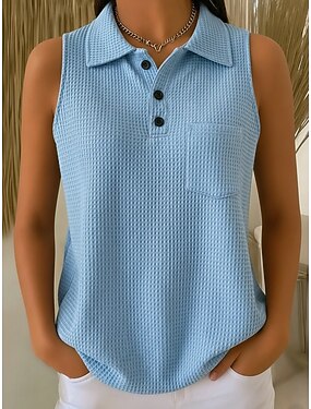 Mulheres Camisola Regata Botões Bloco de cor Vintage Diário à moda Sem Manga Gola Redonda Tops regulares Diário Rosa Vermelho Verde Cinzento Verão Primavera
