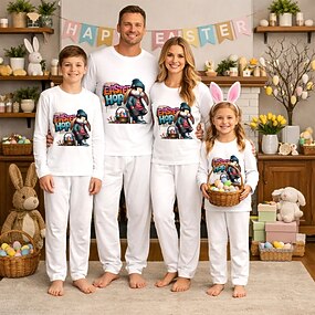 Olhar de família Páscoa Pijamas Gráfico Coelho Casual Imprimir Branco Manga Longa Férias Roupas Combinando