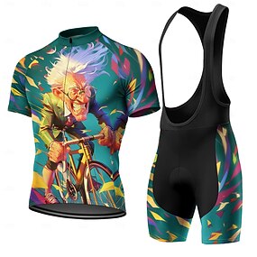 Homens Camisa com Bermuda Bretelle Manga Curta Ciclismo de Montanha Ciclismo de Estrada Verão Azul Vermelho Laranja Carta e Número Engraçado Moto Tapete 3D Secagem Rápida Bolso Traseiro Pavio Humido