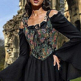 Retro Vintage Medieval Renascentista Corpete Colete corpete Floral Jacquard Pescoço de Querida Fantasia Mulheres Celta Fantasia Dia Das Bruxas Carnaval Festa Casual / Diário LARP Adulto Corpete