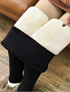 Leggings de inverno de pele de cordeiro para mulheres, calças justas térmicas de cintura alta com forro de lã, leggings de algodão elástico grosso e quente para clima frio