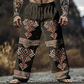 Homens Estampa Geométrica Viking Arte Celta Calças Calça casual Calças largas Cintura Média Vintage retrô Casual Ao ar livre Cintura elástica com cordão Calças de linho com bolsos Primavera Outono