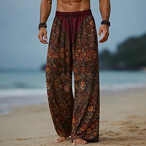 Homens Estampa floral Flores Calças Calças largas Calça casual Cintura Média Boho Vintage retrô Casa Ao ar livre Férias Cintura elástica com cordão Calças de linho com bolsos Verão Primavera