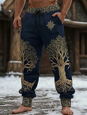 Homens Totem Viking Árvore da Vida Calças Esportivas Corredor Calças Cintura Média Cintura elástica com cordão Vintage retrô Ao ar livre Acampar e Caminhar Caça Calça de moletom esportiva com bolsos