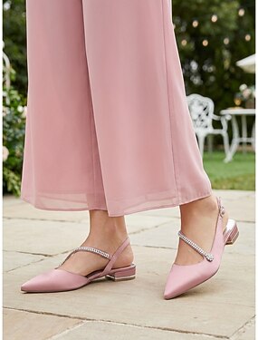 Sapatilhas femininas rosa de bico fino com tira de strass, elegantes sapatos para a mãe da noiva em casamentos no jardim, confortáveis para uso externo.