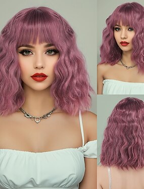Perucas sintéticas Ondulado Trama Curly Corte Assimétrico Franja Lisa Fabrico à Máquina Peruca 30 polegadas Rosa Violeta Cabelo Sintético Mulheres Clássico Confortável Requintado Multi Cores