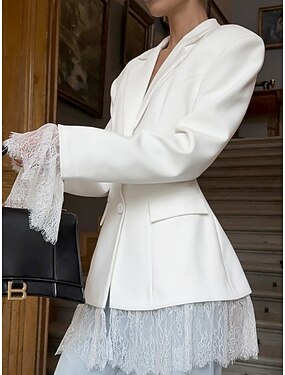 Mulheres Blazer Jaqueta casual Confortável Renda Botões Elegante Moda Casual Côr Sólida Formal Roupa Diária Para Noite Final de semana Padrão Lapela Chanfrada Normal Manga Longa agasalhos Preto
