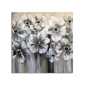 Pintura a Óleo Pintados à mão Quadrada Abstrato Floral / Botânico Moderno Tela enrolada (sem moldura)